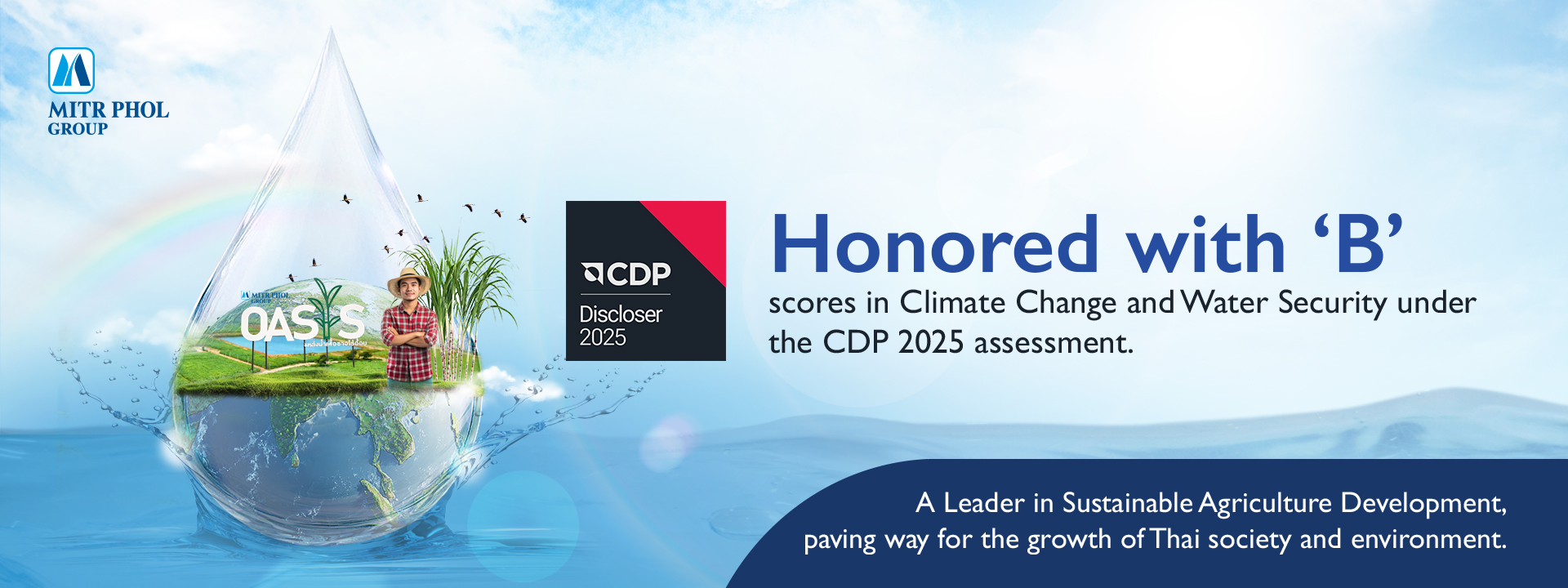 Mit Phol Group is honored to receive a “B” rating for Climate Change and Water Security in CDP’s 2025 assessment, reaffirming our leadership in Thailand’s agro‑industrial sustainability and our commitment to long‑term environmental and social impact.