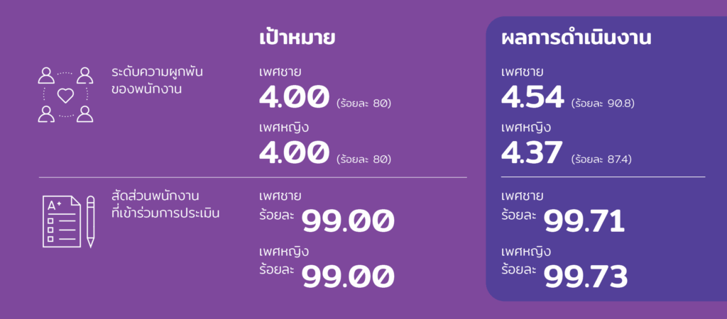 ซึ่งแต่ละกลุ่มธุรกิจได้นำแนวทางการทำงานดังกล่าวไปบูรณาการร่วมกับการดำเนินงาน พร้อมทั้งมีการแบ่งปันประสบการณ์จริงระหว่างพนักงานจากแต่ละหน่วยงาน รวมถึงการนำเครื่องมือในการตั้งเป้าหมายและกำหนดตัววัดผล (Objective and Key Results: OKRs) มาใช้เพื่อเชื่อมโยงเป้าหมายของธุรกิจกับผลลัพธ์ของการปฏิบัติงานโดยมุ่งหวังผลลัพธ์ดังนี้